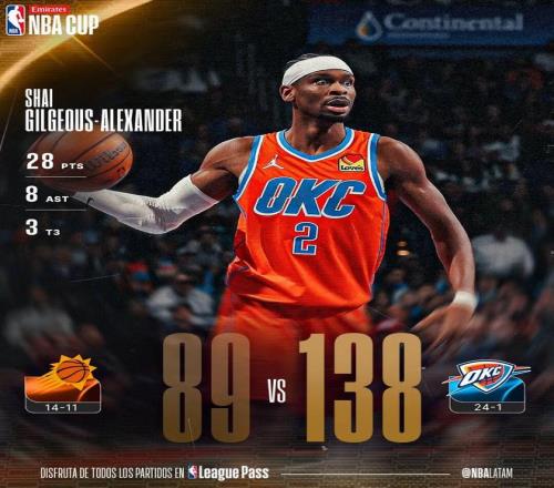 常规赛,雷霆主场138-89战胜太阳。