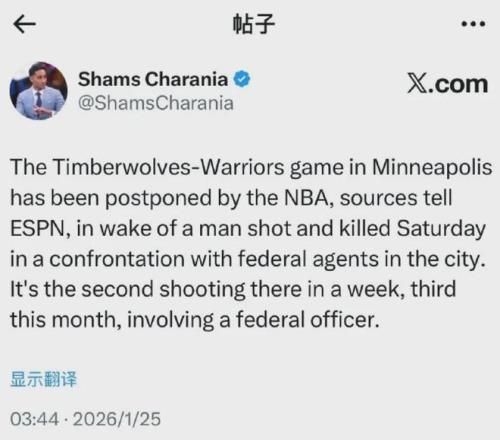 据报道,在勇士官方社媒账号下,非常多的明尼阿波利斯人留言希望取消比赛,现在NBA终于有了反应: