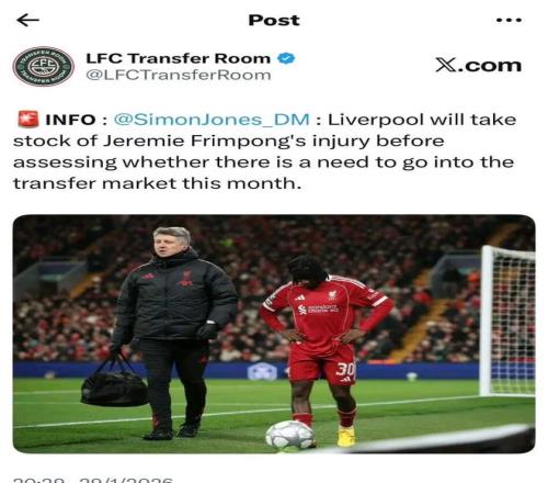 西蒙·琼斯:利物浦方面将根据弗林蓬的伤势结果评估是否补人。