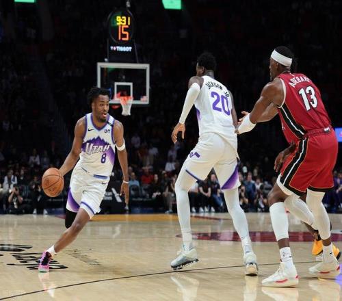 比赛开局,两队短暂相持后热火率先发力,分差迅速拉开至两位数。爵士虽掀起追分势头,但热火新秀亚库乔尼斯外线手感火热,连续远投命中强势回应。不过进入次节,热火命中率大幅下滑,单节仅得20分,半场战罢爵士已反超 9 分。下半场归来,热火状态回暖逐步迫近比分,末节双方再度陷入胶着,悬念一直保留到最后时刻。关键时刻森萨博命中反超三分,亚库乔尼斯远投绝杀未果,最终爵士115-111险胜热火,成功止住连败。